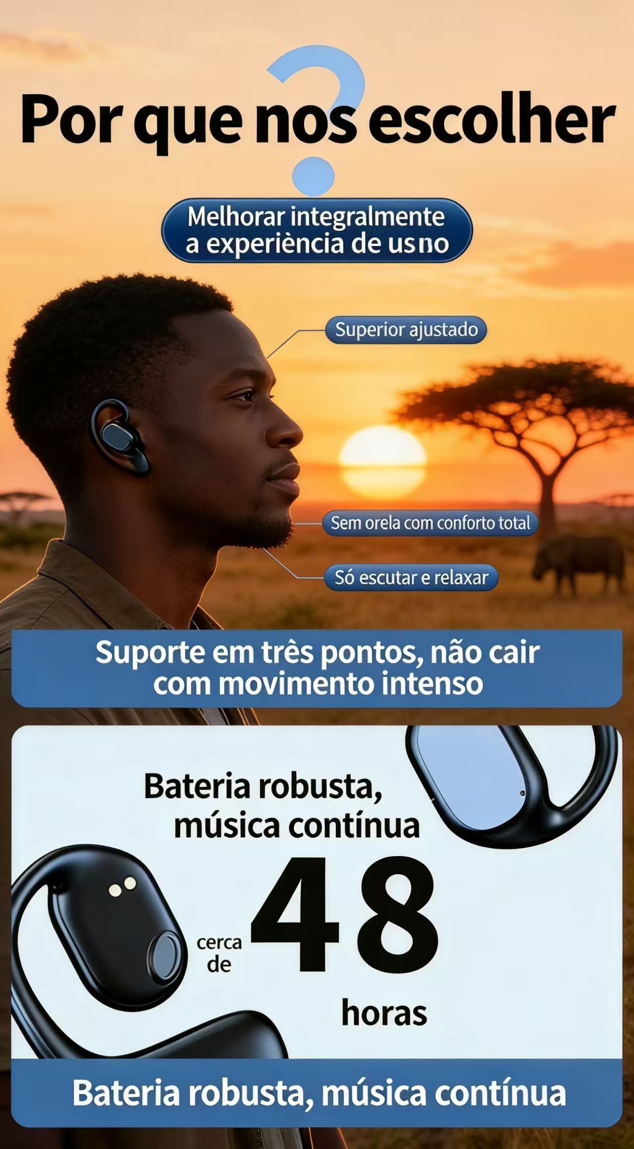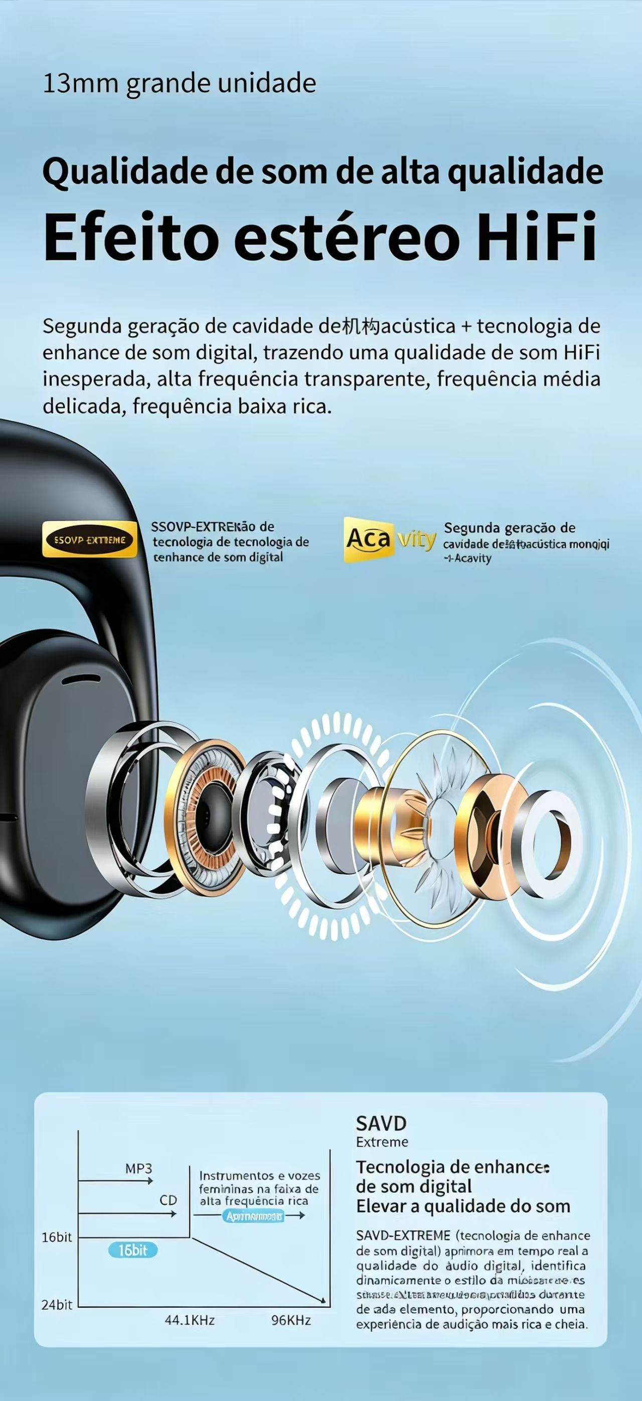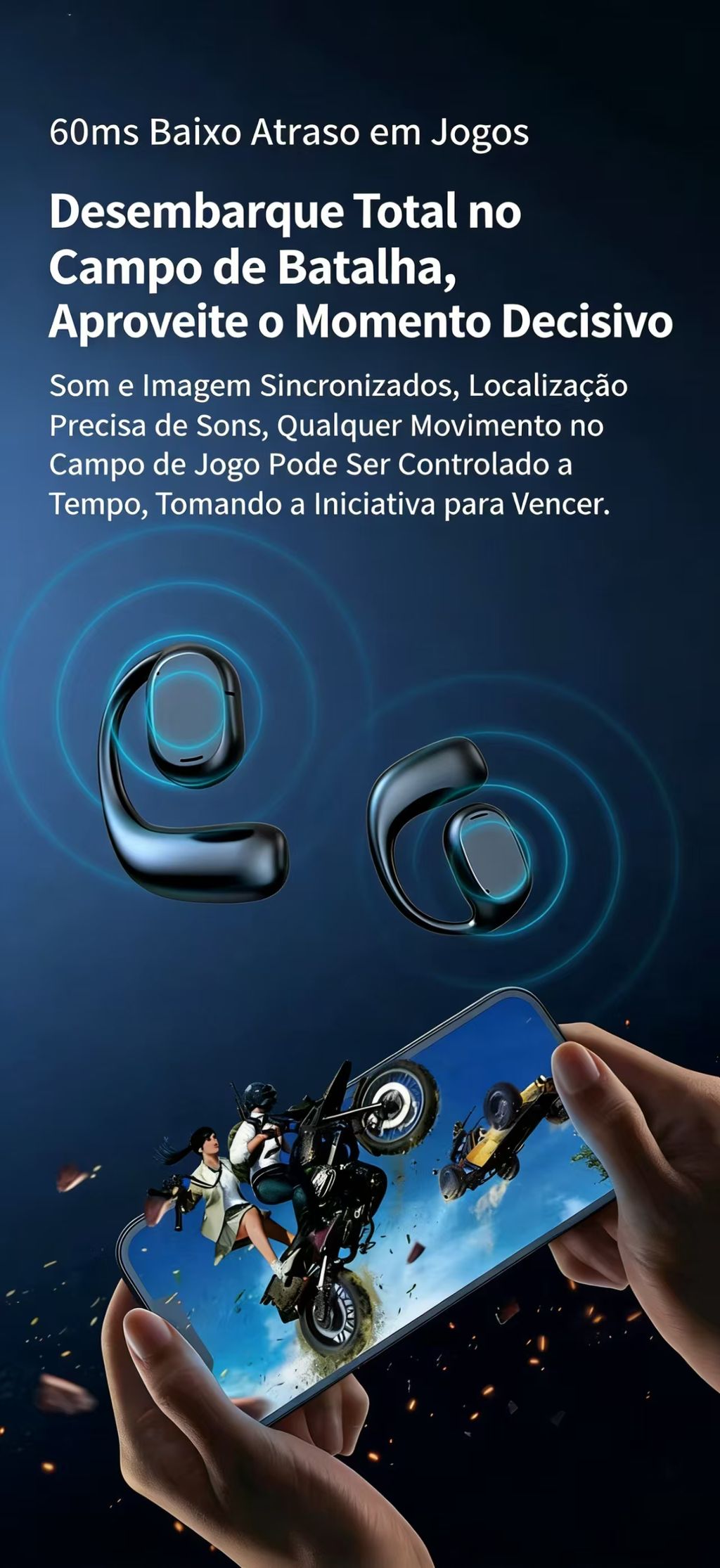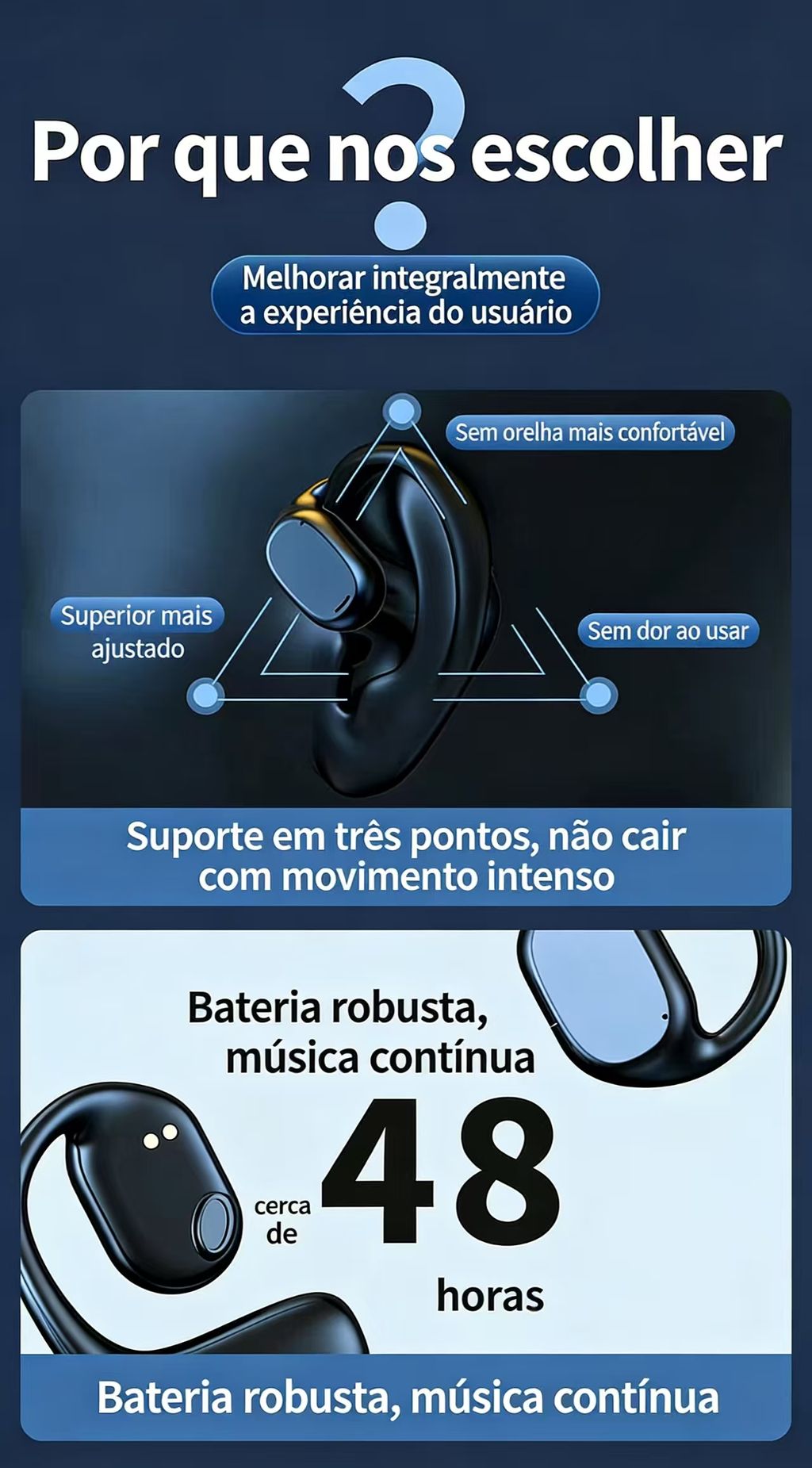Com um peso total de apenas 42g, esses fones são extremamente leves e confortáveis, permitindo o uso prolongado sem causar fadiga na orelha. A bateria de 55mAh por ouvido oferece autonomia suficiente para suas atividades, com um tempo de carregamento rápido de apenas 1 hora, para que você nunca fique sem música ou chamadas.