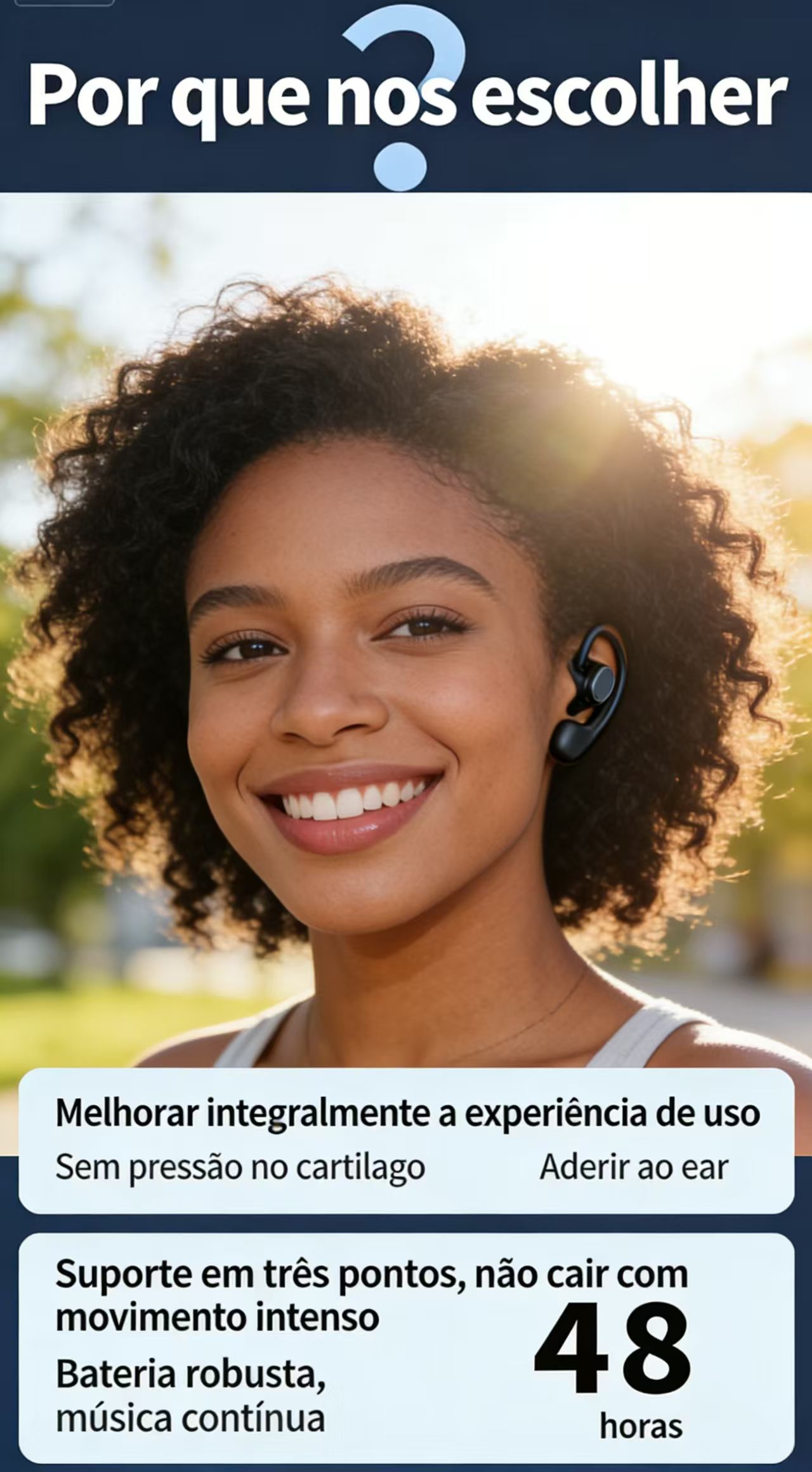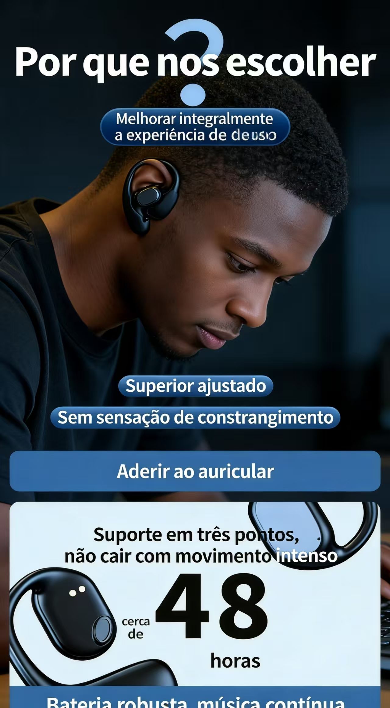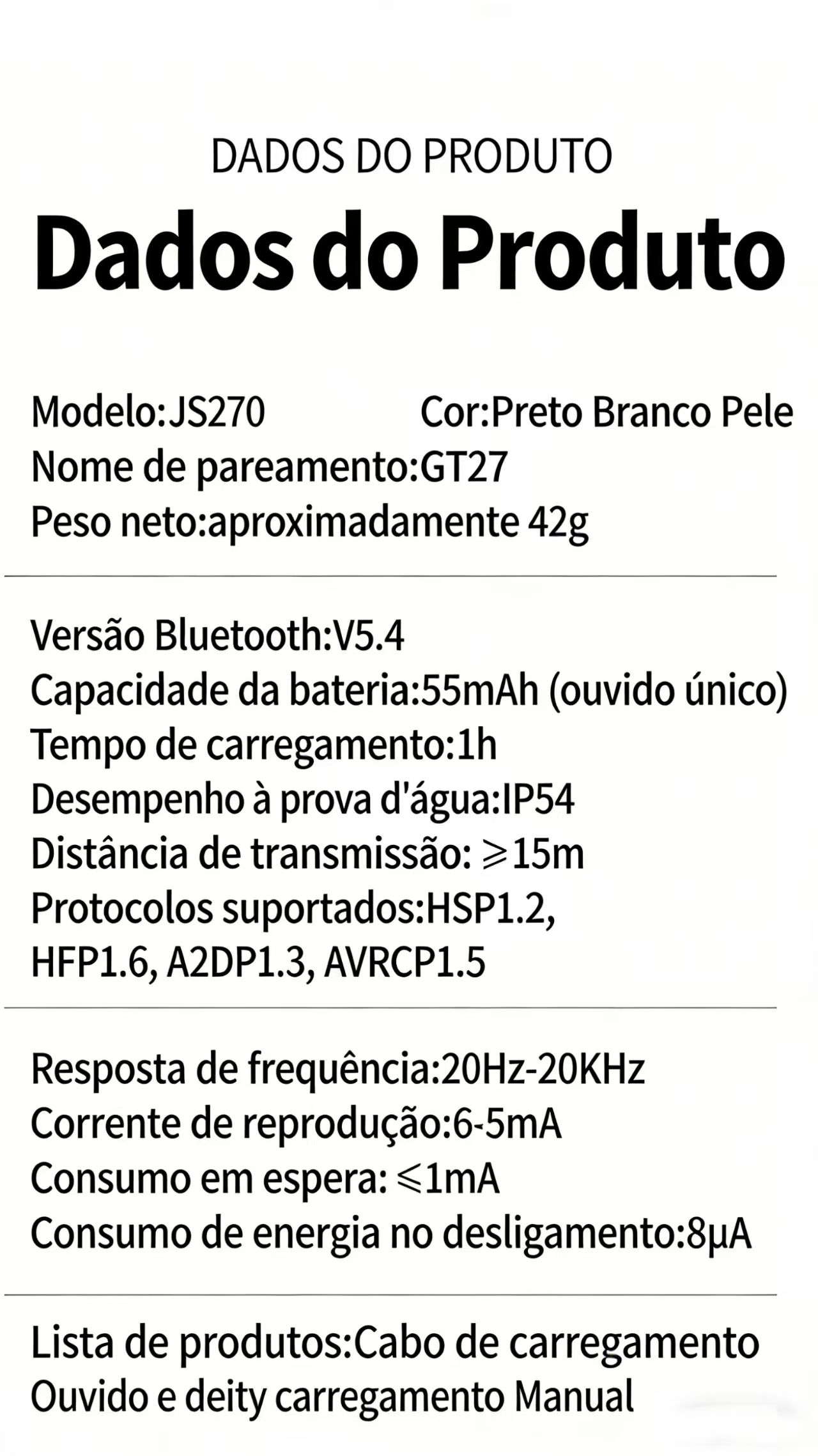 Desfrute de uma experiência auditiva única com os fones de ouvido GT27 (modelo JS270), que combinam design inovador de orelha aberta com tecnologia de ponta. Ao contrário dos fones tradicionais, eles se fixam na parte externa da orelha, permitindo que você ouça o ambiente ao seu redor enquanto desfruta do seu áudio preferido – ideal para caminhadas, corridas ou uso no trânsito.