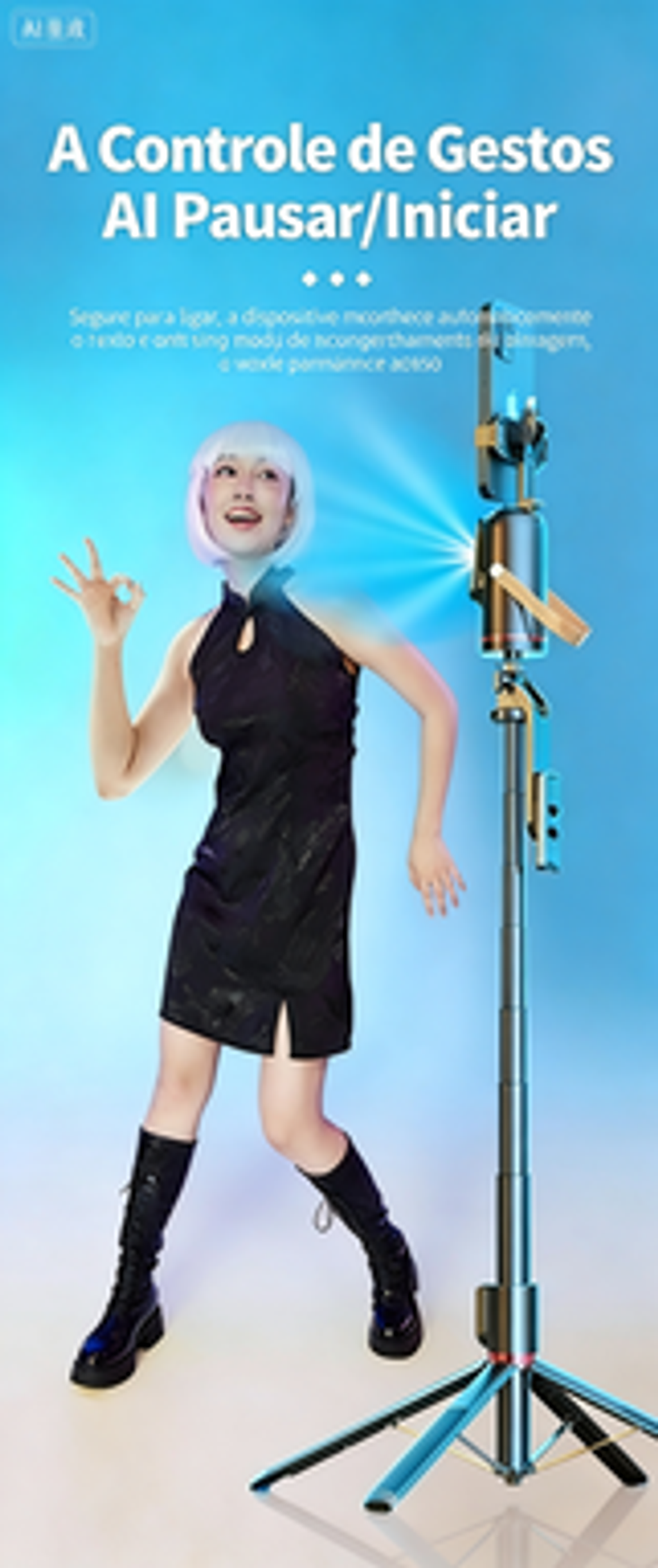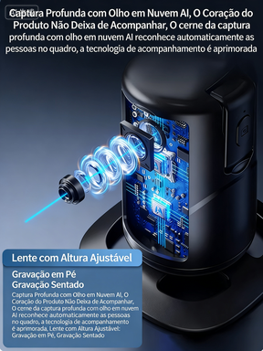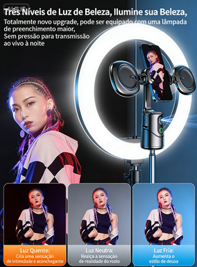 ✅ Leve e portátil, cabe na sua bolsa ou mochila✅ Acompanhamento automático 360°, sem necessidade de operador✅ Iluminação integrada para gravações em ambientes escuros✅ Design elegante e durável, ideal para criadores de conteúdo